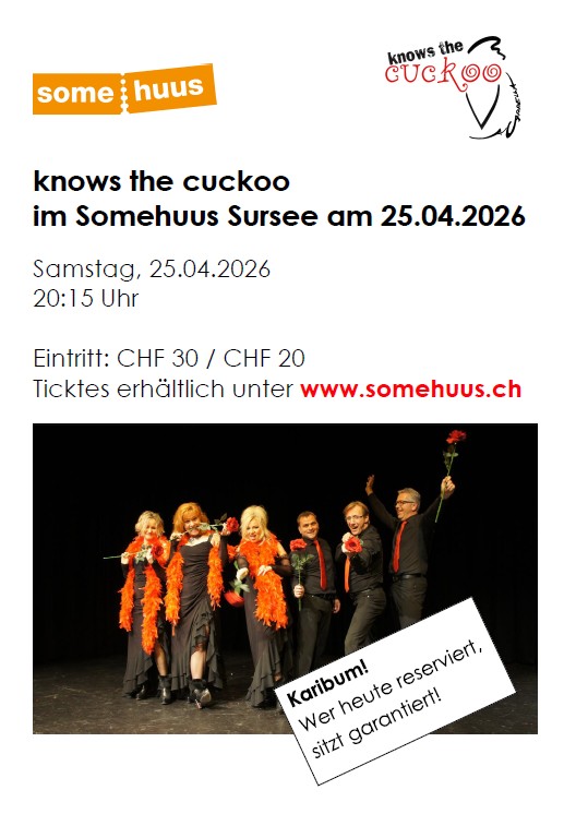 knows the cuckoo auch mal bei Ihnen? Konzerte, Partys, Privatanlässe, Firmenessen und weitere Events sind für Menschen mit Sinn für Herzmusik wie für Ornithologen, die sich auf schräge Singvögel spezialisiert haben, der richtige Beobachtungsort, um die Gogger erleben zu können.